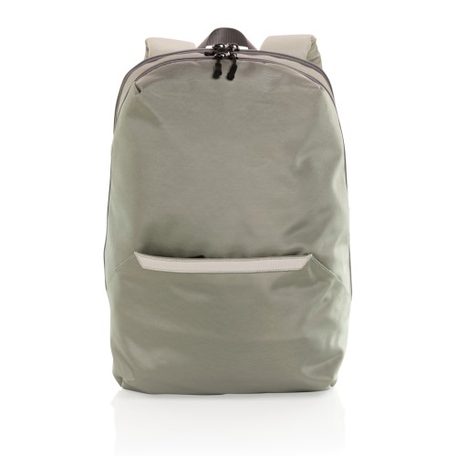 Look sharp in and out of the office with this sleek looking minimalistic design backpack. The backpack features a separate 15.6 inch laptop compartment and a zipper front pocket. The exterior material and lining is made with recycled polyester. With AWARE™ tracer that validates the genuine use of recycled materials. Each bag has reused 32.7 0.5L PET bottles. 2% of proceeds of each Impact product sold will be donated to Water.org. PVC free.