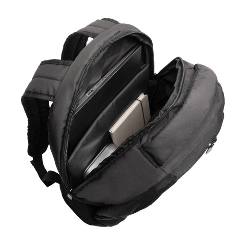 Look sharp in and out of the office with this classic looking laptop backpack. The backpack features a separate 15.6 inch laptop compartment and a zipper front pocket. The exterior material and lining is made with recycled polyester. With AWARE™ tracer that validates the genuine use of recycled materials. Each bag has reused 22 0.5L PET bottles. 2% of proceeds of each Impact product sold will be donated to Water.org. PVC free.