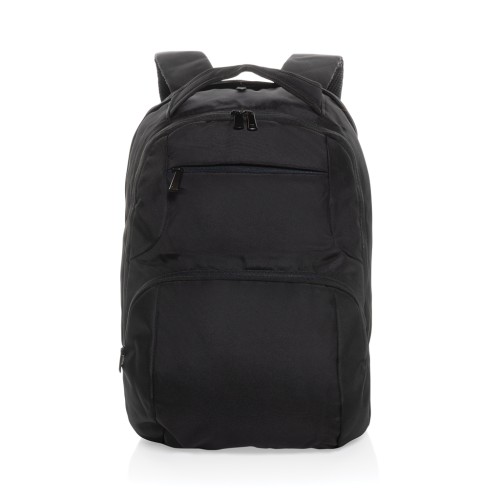 This Universal AWARE™ 1200D polyester laptop backpack is a true classic design with two main compartments. The backpack features a 15.6 inch laptop compartment and a zipper front pocket. . With AWARE™ tracer that validates the genuine use of recycled materials. Each bag has reused 37.4 0.5L PET bottles. 2% of proceeds of each Impact product sold will be donated to Water.org. PVC free.