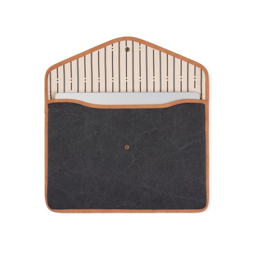 Keep your laptop safe with a classic and stylish sleeve from our Bosler series. Closed with a press button and padded for safe storage. Made of recycled canvas with details in PU. Please note: Display dimensions may vary from laptop dimensions. Certified by GRS (Global Recycled Standard), GRS certification guarantees that the entire supply chain of the recycled materials is certified. The total recycled content is based on the overall product weight.This product contains 37% GRS certified recycled cotton and 25% GRS recycled polyester.