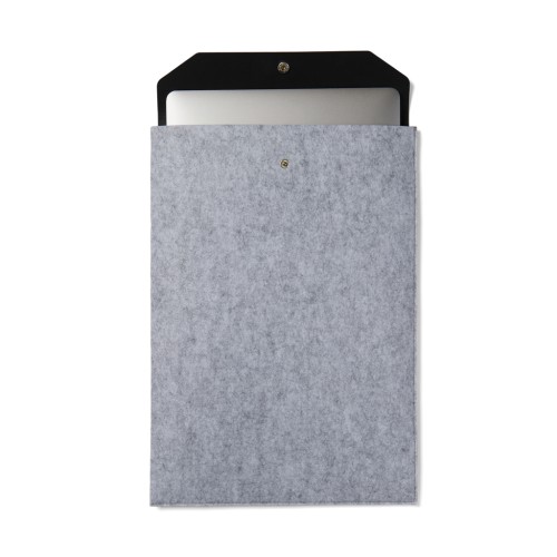 Laptop sleeve designed with a sleek, clean aesthetic using GRS recycled felt with a mélange effect. This sleeve effectively protects your computer from bumps and moisture. It features a PU flap opening for easy access and added elegance. The inner dimensions of this case are 38,5x2.5x27,5 cm, making it suitable for computers with an overall size of 17 inches. Please note that the dimensions of the display are not the same as the dimensions of the entire computer. Certified by GRS (Global Recycled Standard), GRS certification guarantees that the entire supply chain of the recycled materials is certified. The total recycled content is based on the overall product weight. This product contain 82% GRS recycled felt.Suitable for computers with an overall size of 17 inches. Please note that the dimensions of the display are not the same as the dimensions of the entire computer.