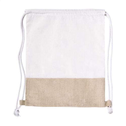 Drawstring bag in combination of jute and cotton (120 g/m²), with braided strings.