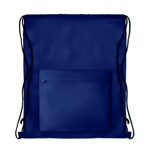 Large drawstring bag in 210D polyester with zippered front pocket. Sublimation print available on white item only.