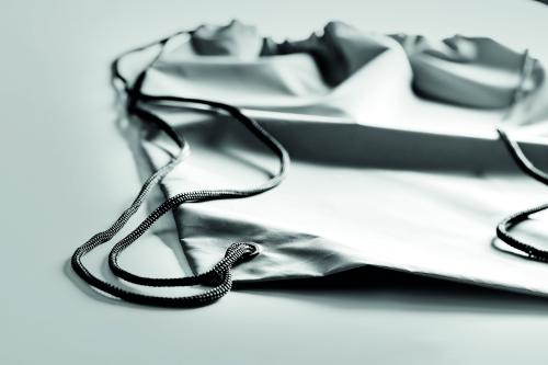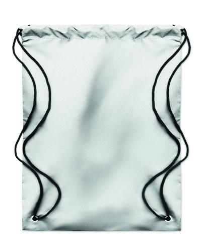 Drawstring bag in high reflective 190T polyester.