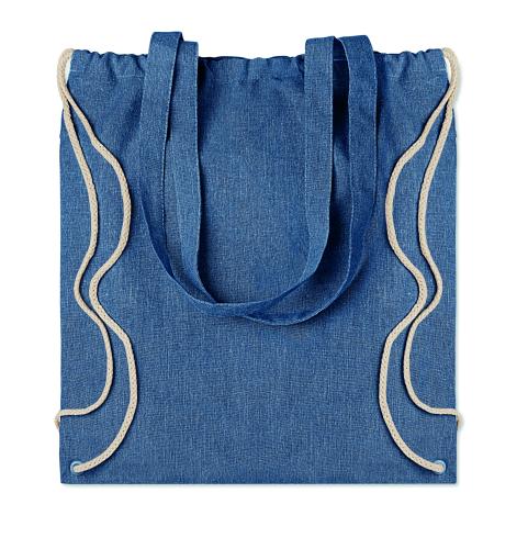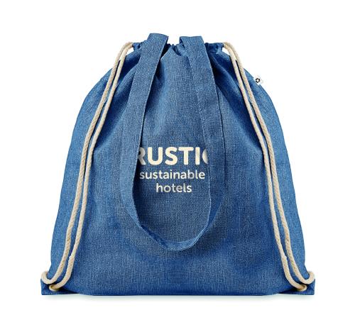 2 tone recycled cotton and recycled polyester shopping bag with drawstring and long handles (20%/80%). Approx. 140 gr/m². This item can shrink after printing.