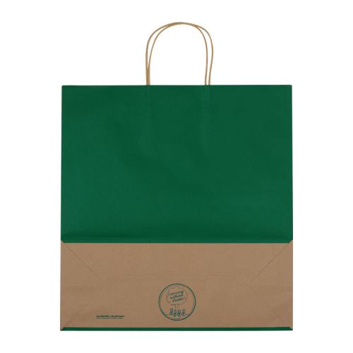 Spacious paper bag (recycled - 120g/m²) with bottom fold, 2 strong handles and coloured front and rear. This nice bag is also perfectly reusable.
