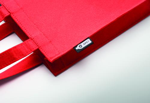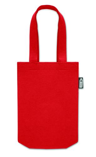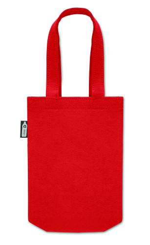 Small RPET felt gift or goodie bag with short handles and bottom gussets. Felt thickness: 1 mm.