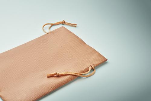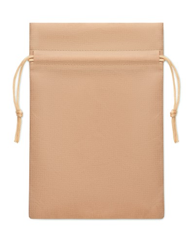 Small gift draw cord bag in RPET non-woven 80 gr/m². Size approx. 20x30 cm.