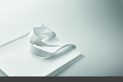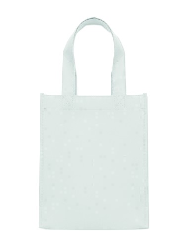 Small gift or goodie bag in RPET non-woven with short handles and gussets. 80 gr/m².