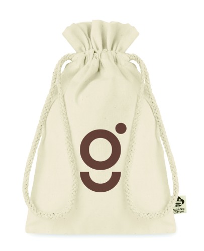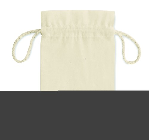 Small gift draw cord in organic cotton. Size approx. 14x22 cm. 105 gr/m².