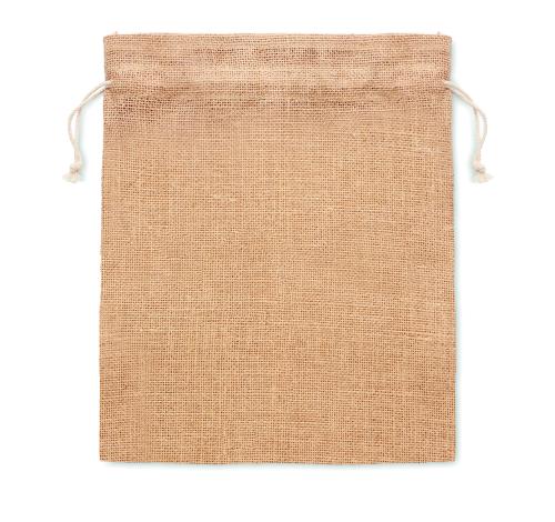 Small gift jute draw cord bag. Size approx. 14 x 22cm.