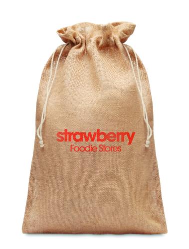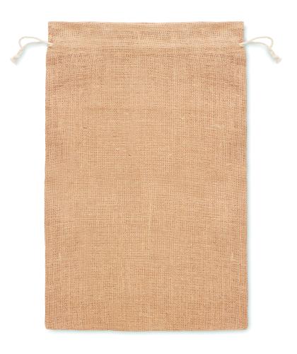 Large gift jute draw cord bag. Size approx. 30x47 cm.