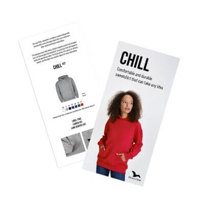 DL - 220 x 110 mm A5 - 148 × 210 mm Printed materials with collections and services to support sales. Clear info about the brand, benefits and product offer. Suitable for shops, showrooms, and trade fairs.