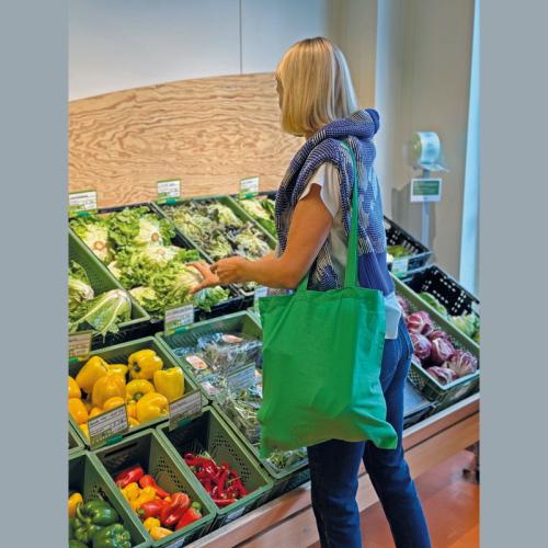 Eco-friendly cotton bag with long handles, in different colours and a particularly strong grammage of 140g/m².