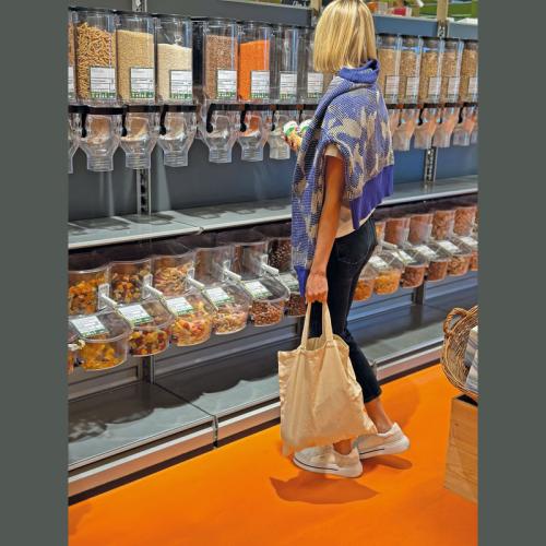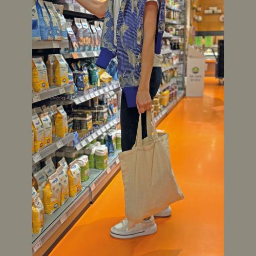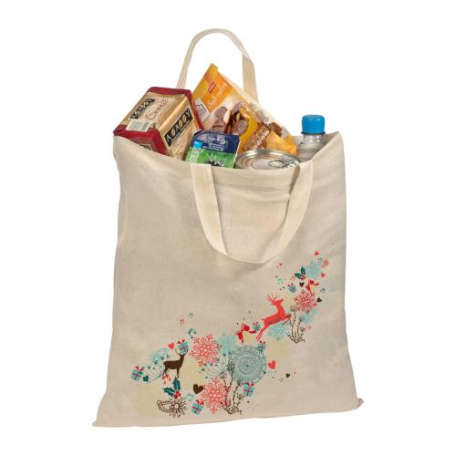 Natural-coloured cotton bag (140g/m²) with two short handles.