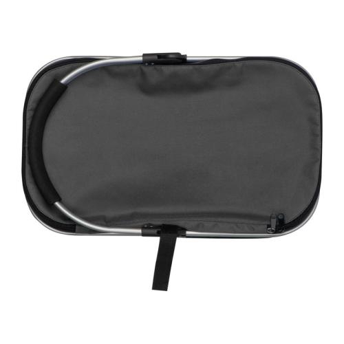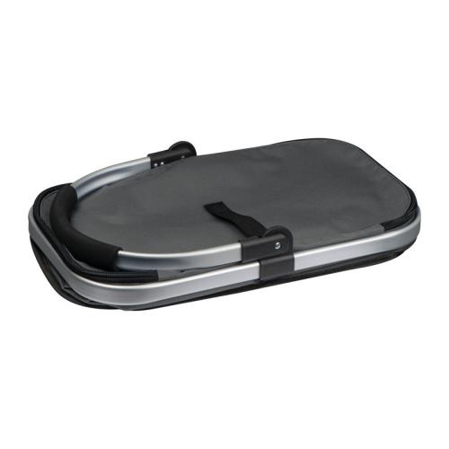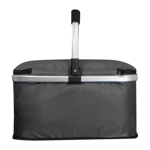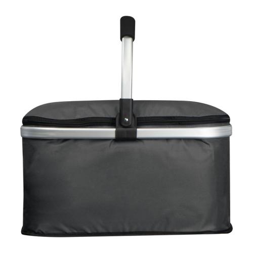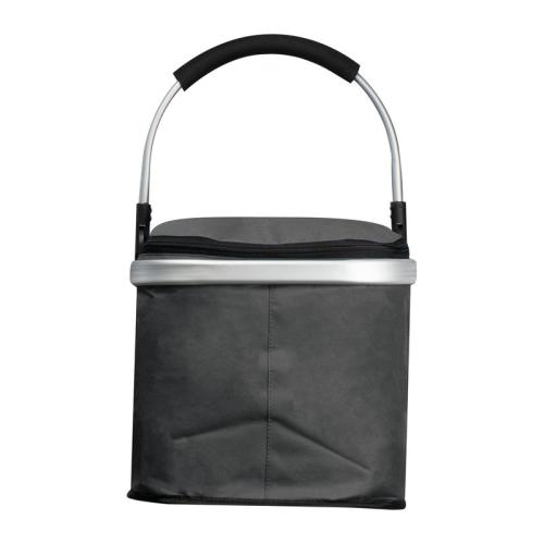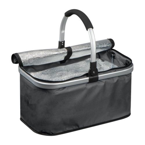 Handy polyester shopping basket with cooling function and a foldable aluminium carrying handle. The basket is easy to fold and has a carrying capacity of 15kg.