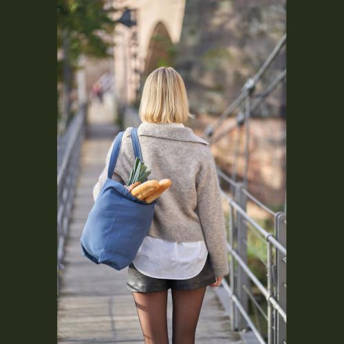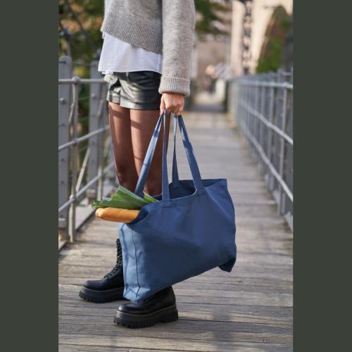Large shopper made of organic cotton (270gsm). The shopper is a real all-rounder due to its size and a sustainable companion in many situations, GOTS certified.