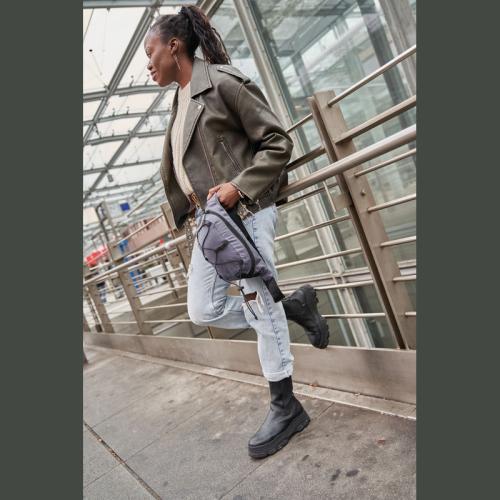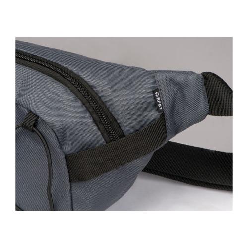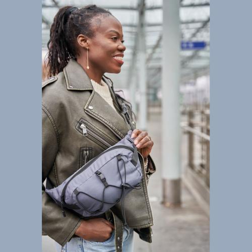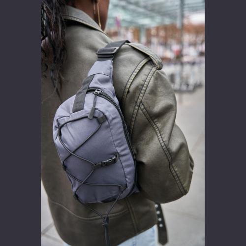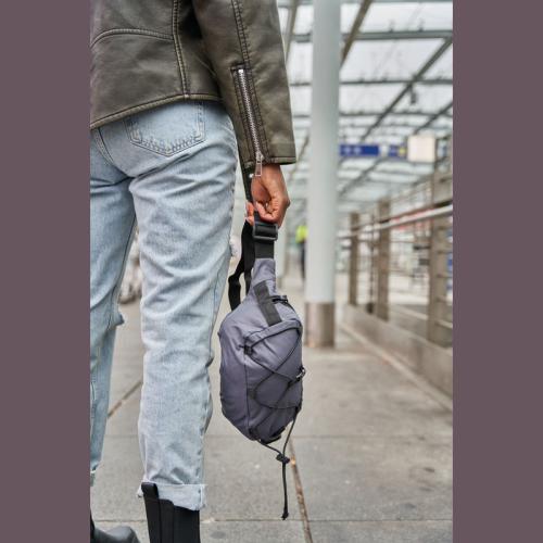 Belt bag made of RPET with adjustable strap and flexible storage net for more storage space.