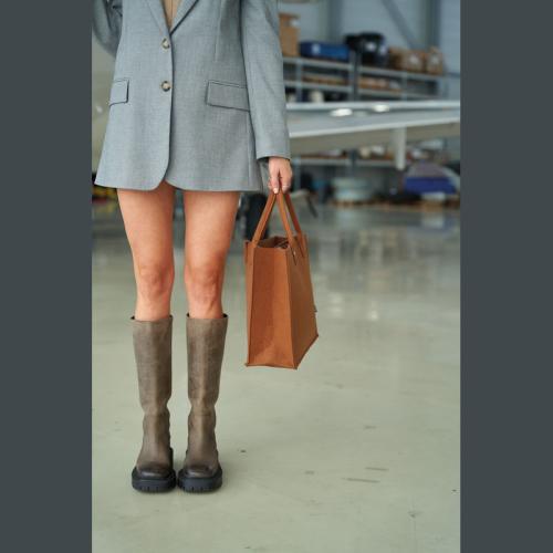 The felt bag made from RPET with a large bottom fold for plenty of space inside.