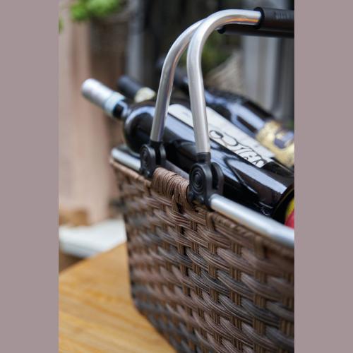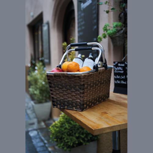 Rattan shopping basket with aluminium handle. We will engrave your logo on the handle.