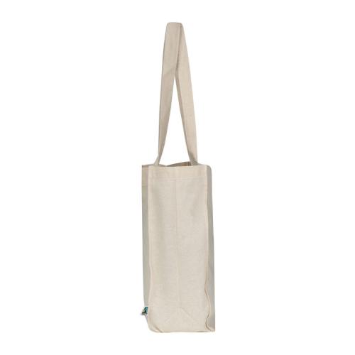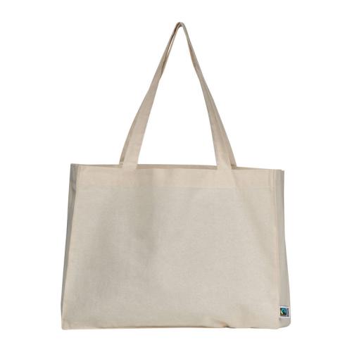 Large Fairtrade cotton bag (180 g/m²) with large bottom gusset and Fairtrade label.