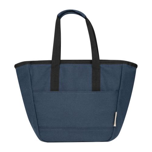 Cooler bag made from recycled cotton with two carrying handles and front compartment, with 10-liter capacity. Ideal as a lunch bag.