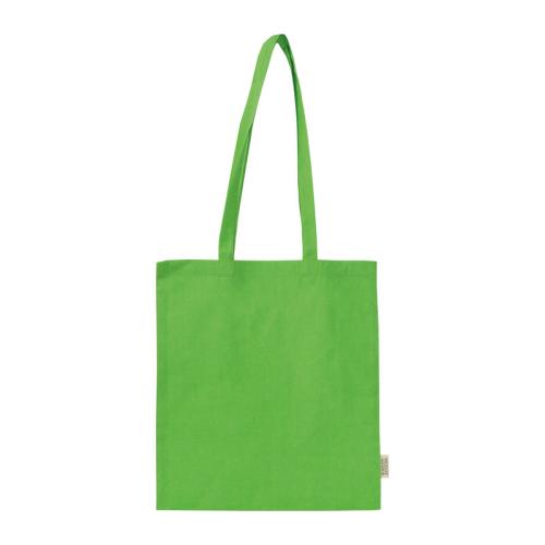 Cotton bag made of 75% recycled cotton and 25% RPET with long handles and a particularly strong grammage of 180g/m².