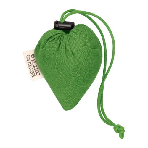 Shopping bag made of recycled cotton and polyester with a grammage of 118 g/m². The bag can be folded up to save space.