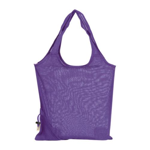 Shopping bag made of recycled cotton and polyester with a grammage of 118 g/m². The bag can be folded up to save space.