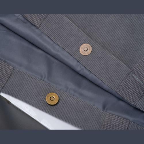 Sturdy shopper made of durable playester cord fabric, 250gsm corduroy (100%) with a front pocket, snap closure, and long, comfortable carrying handles.