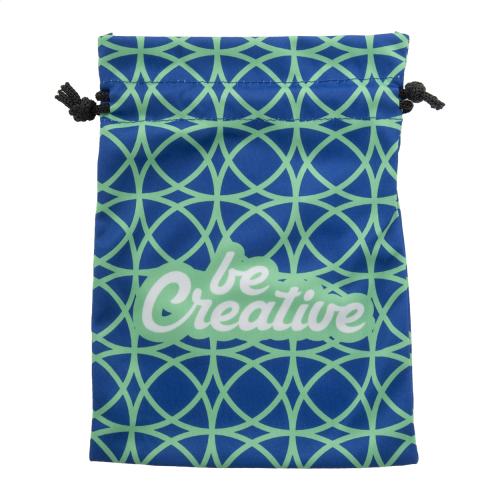 Custom made medium drawstring gift bag with coloured string.