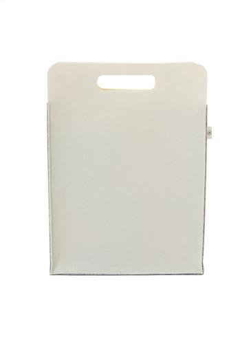 Custom made, RPET felt shopping bag with full colour printed front and back. With die-cut handles, gusset and distinctive RPET label. Price includes sublimation printing. MOQ: 25 pcs.