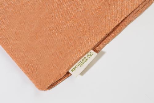 Reusable, recycled cotton shopping bag with long handles and distinctive recycled cotton label. 100% recycled cotton, 140 g/m².