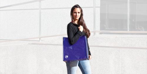 Biodegradable shopping bag with press stud closure. PP woven 120 g/m².