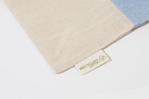 Two-tone recycled cotton shopping bag with long handles and distinctive recycled cotton label. 100% recycled cotton, 120 g/m².