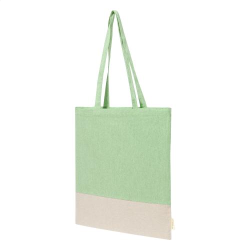 Two-tone recycled cotton shopping bag with long handles and distinctive recycled cotton label. 100% recycled cotton, 120 g/m².