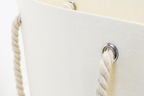 RPET felt beach or shopping bag with cotton cord handles and bottom gusset. With distinctive RPET label.