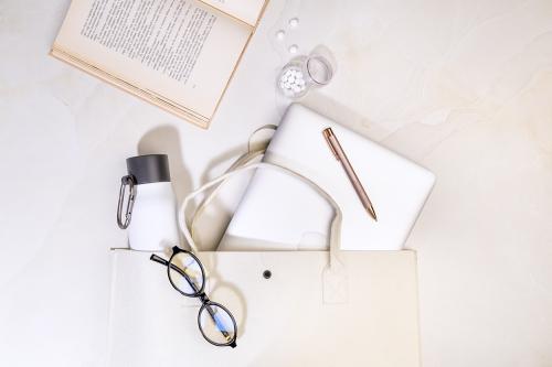 RPET felt shopping bag with gusset, button closure strap and short handles. With distinctive RPET label.