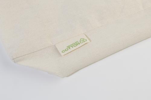 Shopping bag with gusset and long handles in 70% recycled cotton and 30% RPET polyester, 140 g/m². With distinctive recycled cotton label.