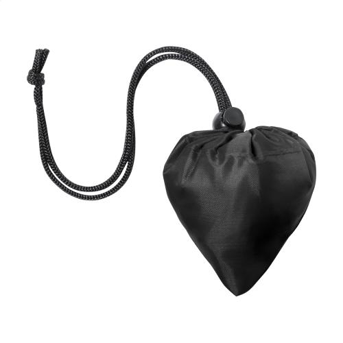 Foldable RPET shopping bag with long handles. 190T RPET polyester, with distinctive RPET label.