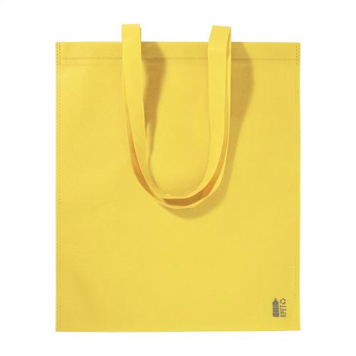 RPET non-woven shopping bag with long handles, 70 g/m². With distinctive RPET sign.