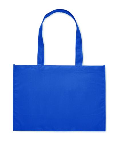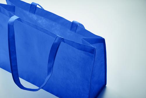 Shopping or beach bag in RPET non-woven with gussets and long handles. 80 gr/m².