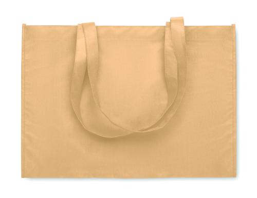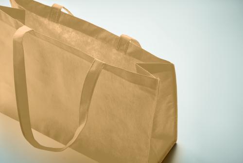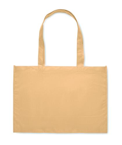 Shopping or beach bag in RPET non-woven with gussets and long handles. 80 gr/m².