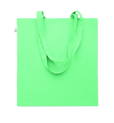 Recycled pre-consumer cotton shopping bag (70% recycled cotton and 30% RPET) with long handles. 140 gr/m². This item can shrink after printing.