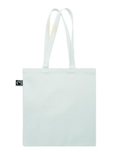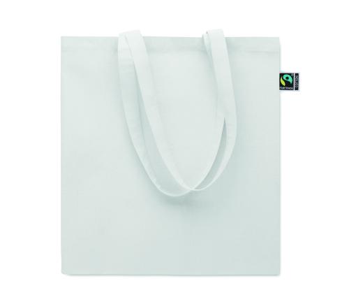 Shopping bag with long handles and gusset made of Fairtrade cotton. 180 gr/m².