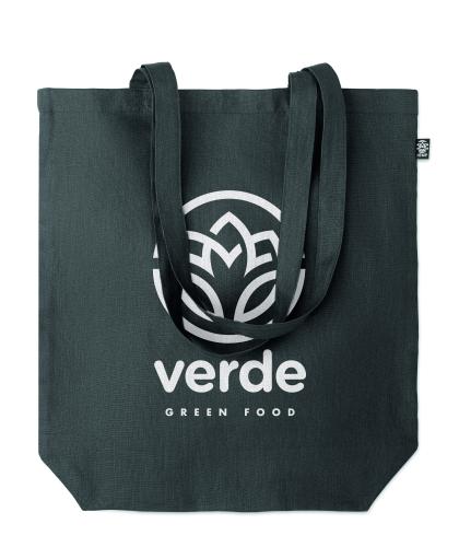 100% hemp fabric shopping bag with long handles with gusset in the bottom. 200 gr/m².