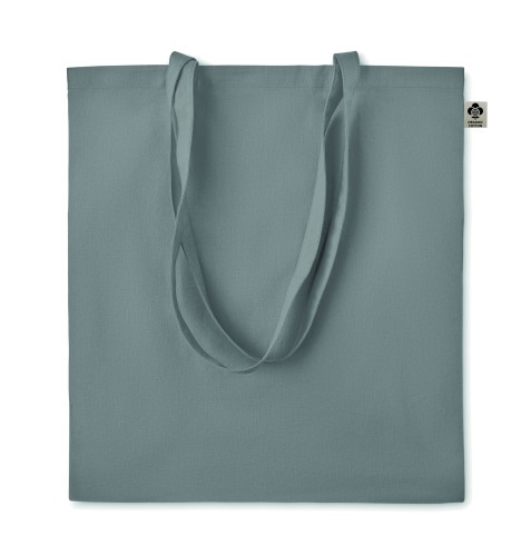 Organic cotton shopping bag with long handles. A classic tote bag design made to carry your daily groceries or other items. Carry the bag in your hands or over your shoulder with the long handles. Made from 100% natural organic cotton 140 gr/m².