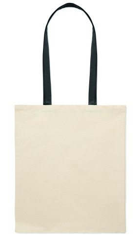 Shopping bag with long coloured handles made from cotton. 140 gr/m². This tote is perfect for daily groceries or other shopping activities. It's available with various coloured handles. Carry the bag over your shoulder when it's heavy and to keep your hands free. Carry weight limit: 2.5kgs.