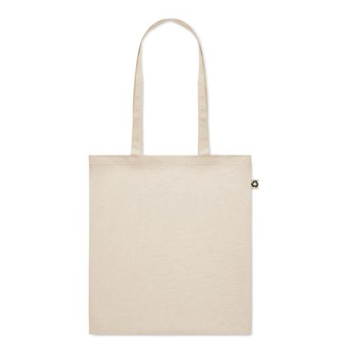 Recycled post-consumer cotton shopping bag (65% recycled cotton, 35% regular cotton) with long handles. 140 gr/m².