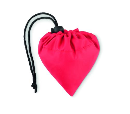 Foldable shopping bag in 190T RPET with drawstring closure on pouch. Sublimation print available on white item only.